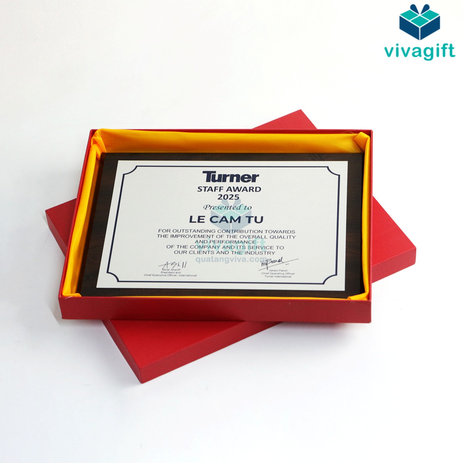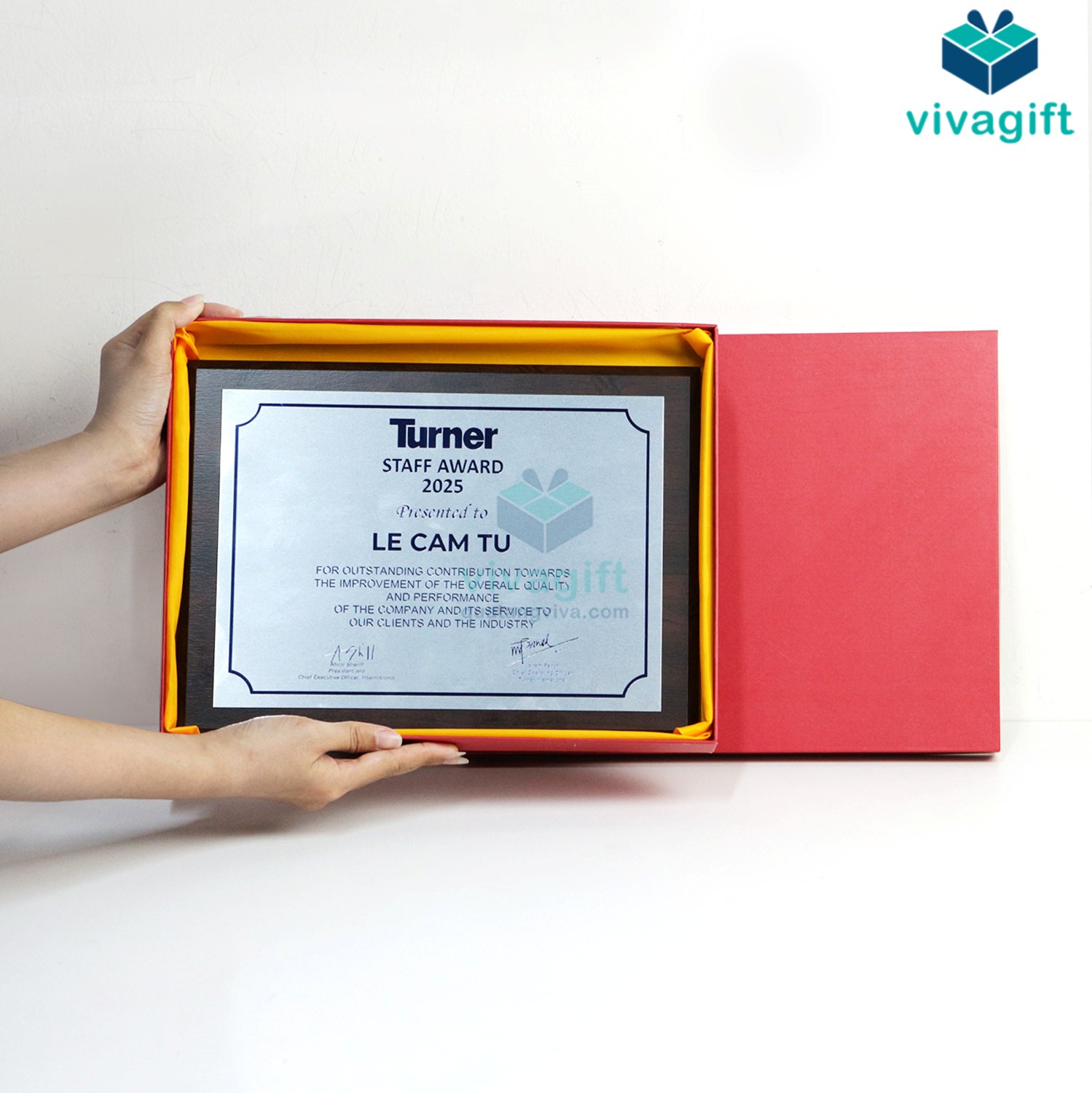 Không chỉ chú trọng vào chất lượng hoàn thiện, bảng được đóng gói trong hộp cứng cao cấp giúp doanh nghiệp sử dụng làm quà tặng nhân viên, khách hàng, đối tác. Đặc biệt, bạn có thể yêu cầu in ấn cá nhân hóa theo từng sự kiện, tên người nhận hoặc logo doanh nghiệp để tạo nên dấu ấn riêng cho mỗi dịp trao thưởng.