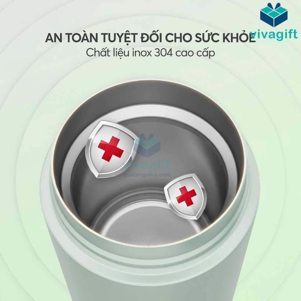 - Chất liệu inox 304 cao cấp cho cả thân và ruột bình, bền bỉ, không thôi nhiễm chất độc hại, đảm bảo an toàn cho sức khỏe và giữ trọn hương vị đồ uống.