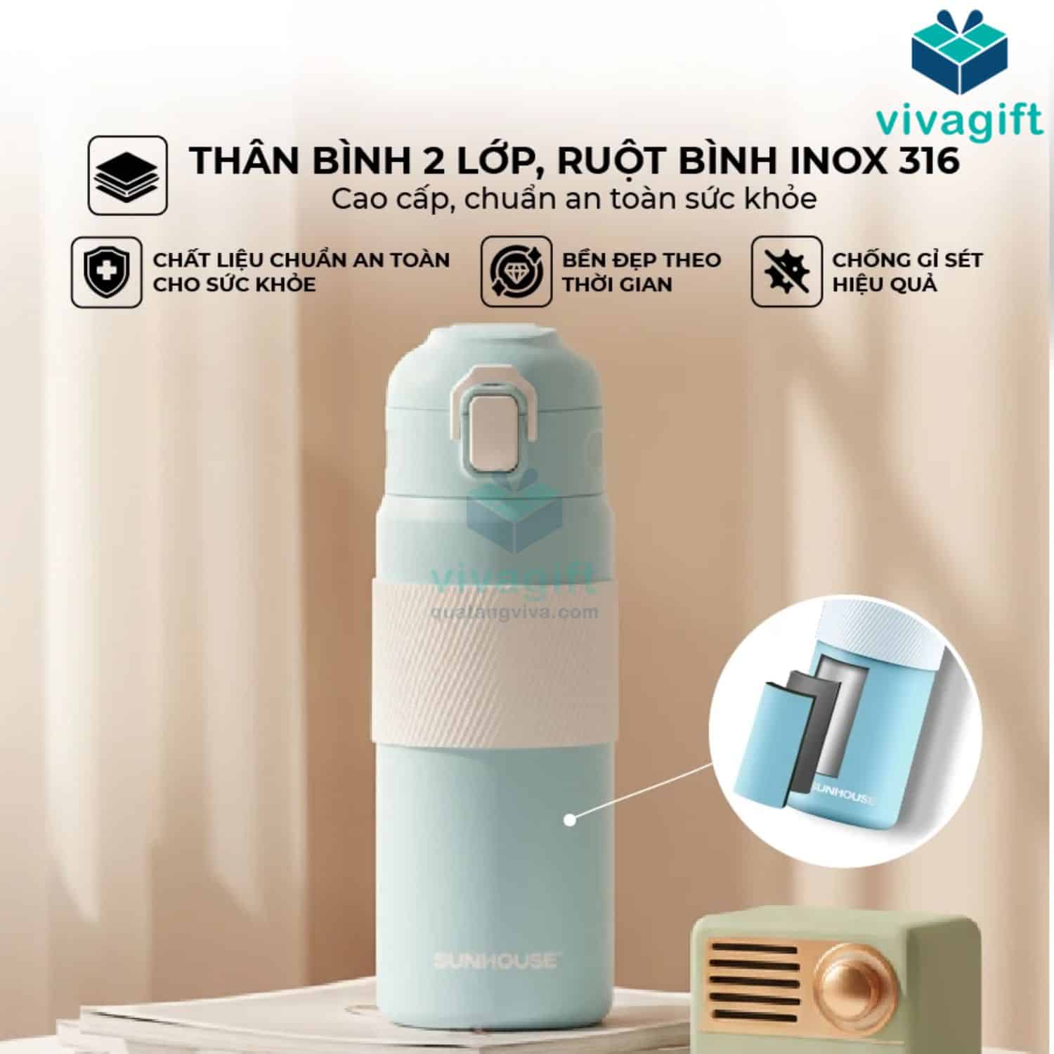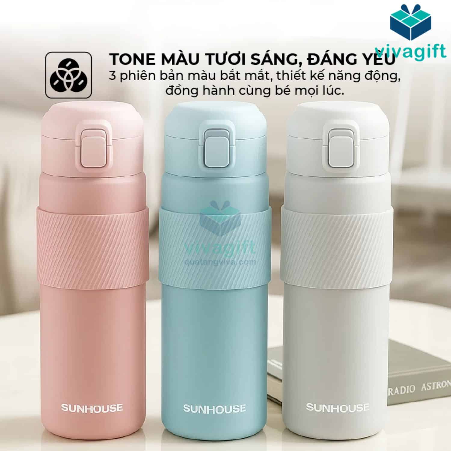 VivaGift chuyên cung cấp bình giữ nhiệt quà tặng in logo, khắc tên theo yêu cầu doanh nghiệp. Vivagift nhận in logo từ 30 sản phẩm trở lên, phù hợp làm quà tặng sự kiện, quà tặng học sinh, nhân viên hoặc khách hàng. Liên hệ hotline: 1900.8159 để được tư vấn và báo giá chi tiết nhé.