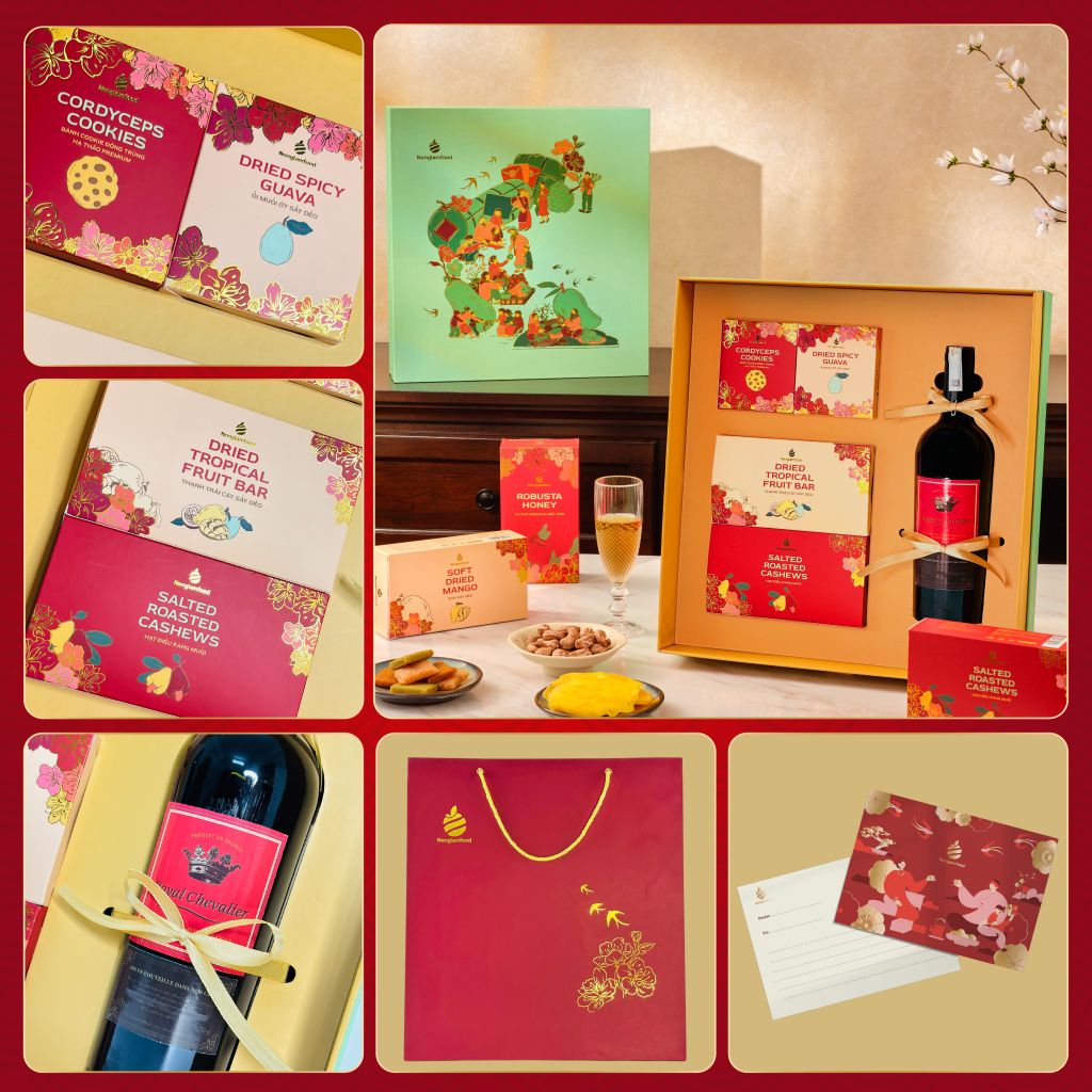 Hộp quà sang trọng với chi tiết dập nổi 3D và chiết quang sắc sảo tạo nên quà tặng đẹp mắt và đầy ý nghĩa. Bộ quà tặng Tết Lộc Phát SQ14 là sự lựa chọn tuyệt vời để bạn gửi gắm lời chúc về năm mới an khang, thịnh vượng và ngọt ngào.