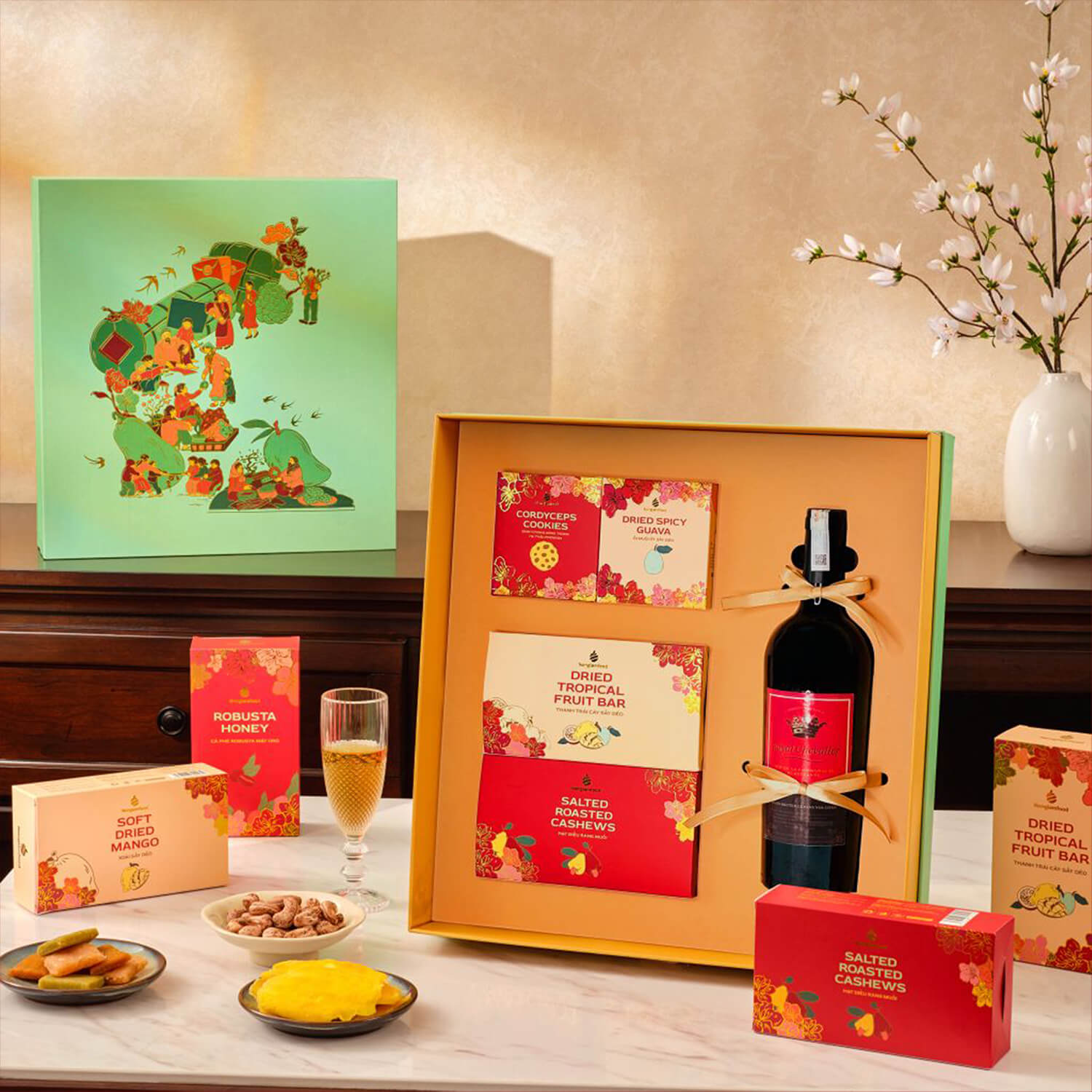 Giftset Lộc Phát SQ14 là món quà hoàn hảo để chúc Tết, mang đến may mắn, sức khỏe và tình thân vững bền. Với sự kết hợp tinh tế giữa các sản phẩm cao cấp, bộ quà này sẽ làm mùa xuân thêm rực rỡ và ý nghĩa cho gia đình, bạn bè, đối tác và khách hàng thân thiết. Set quà gồm: