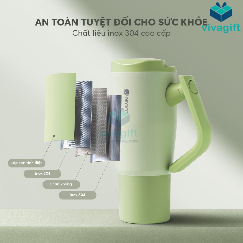 - Cốc giữ nhiệt Elmich EL8390 được sản xuất từ inox 304 cao cấp, an toàn theo chuẩn Châu Âu, không thôi nhiễm chất độc hại, đảm bảo giữ trọn hương vị nguyên bản của đồ uống.