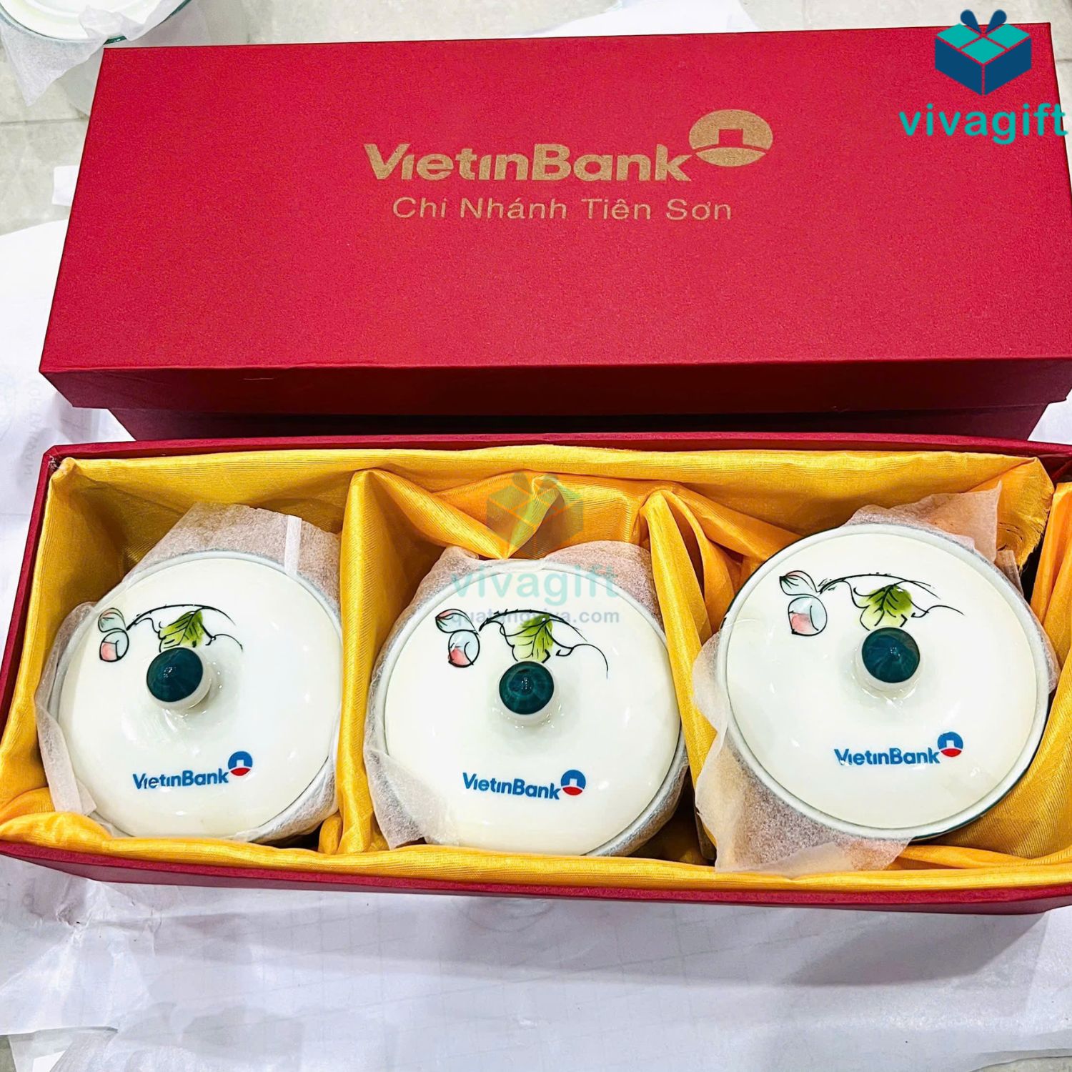 Sở hữu công nghệ in ấn tiên tiến, Viva cam kết đem đến hộp đựng mứt Tết in logo chất lượng cao, đáp ứng mọi yêu cầu khắt khe từ khách hàng. Vivagift nhận đơn từ 30 bộ trở lên, hàng sẵn kho, đảm bảo đáp ứng cho các đơn hàng gấp.