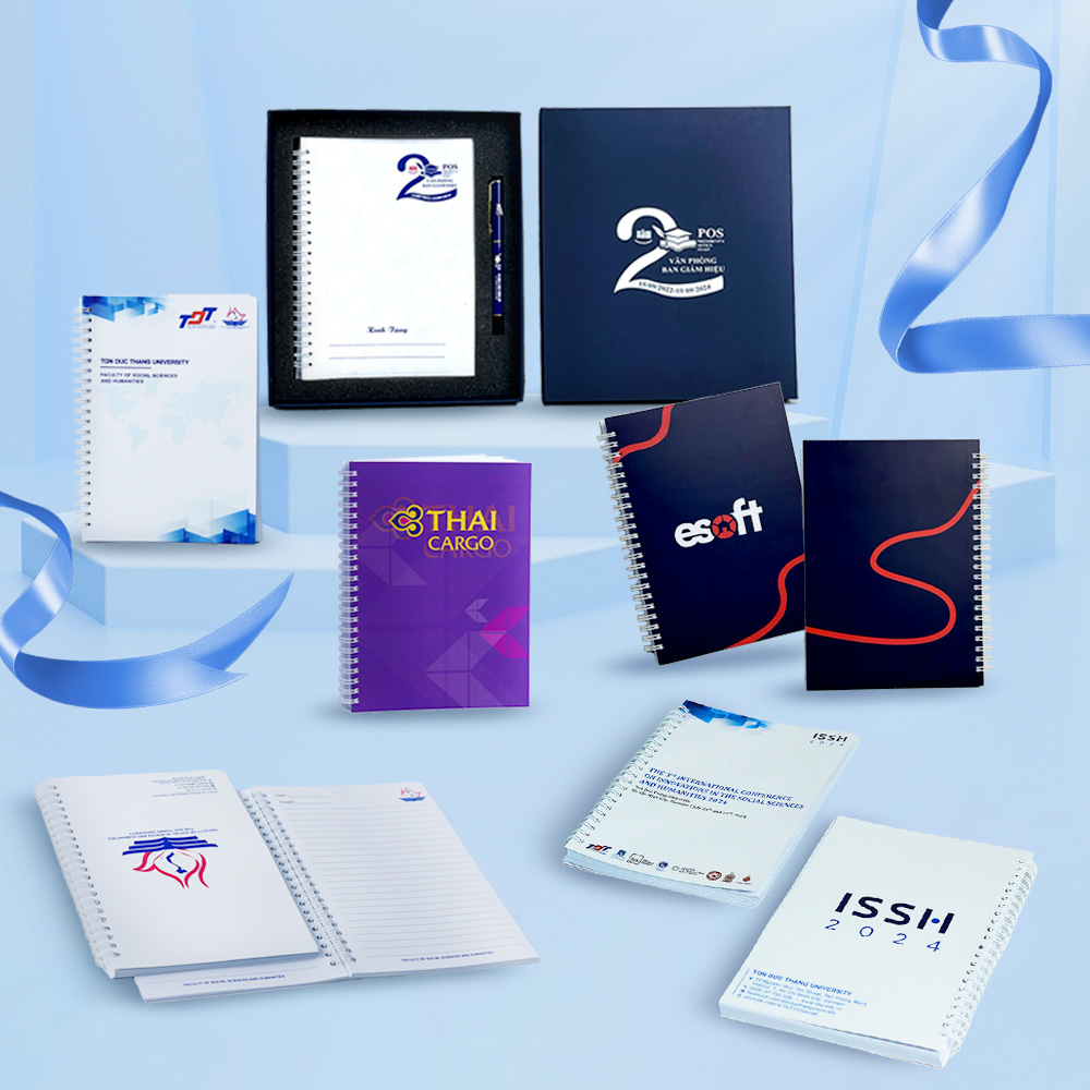 Dịch vụ thiết kế sổ lò xo theo yêu cầu, dễ dàng tùy chỉnh bìa, bố cục và in logo theo hình ảnh thương hiệu. Phù hợp làm quà tặng khách hàng, sự kiện nội bộ hoặc tri ân nhân viên...