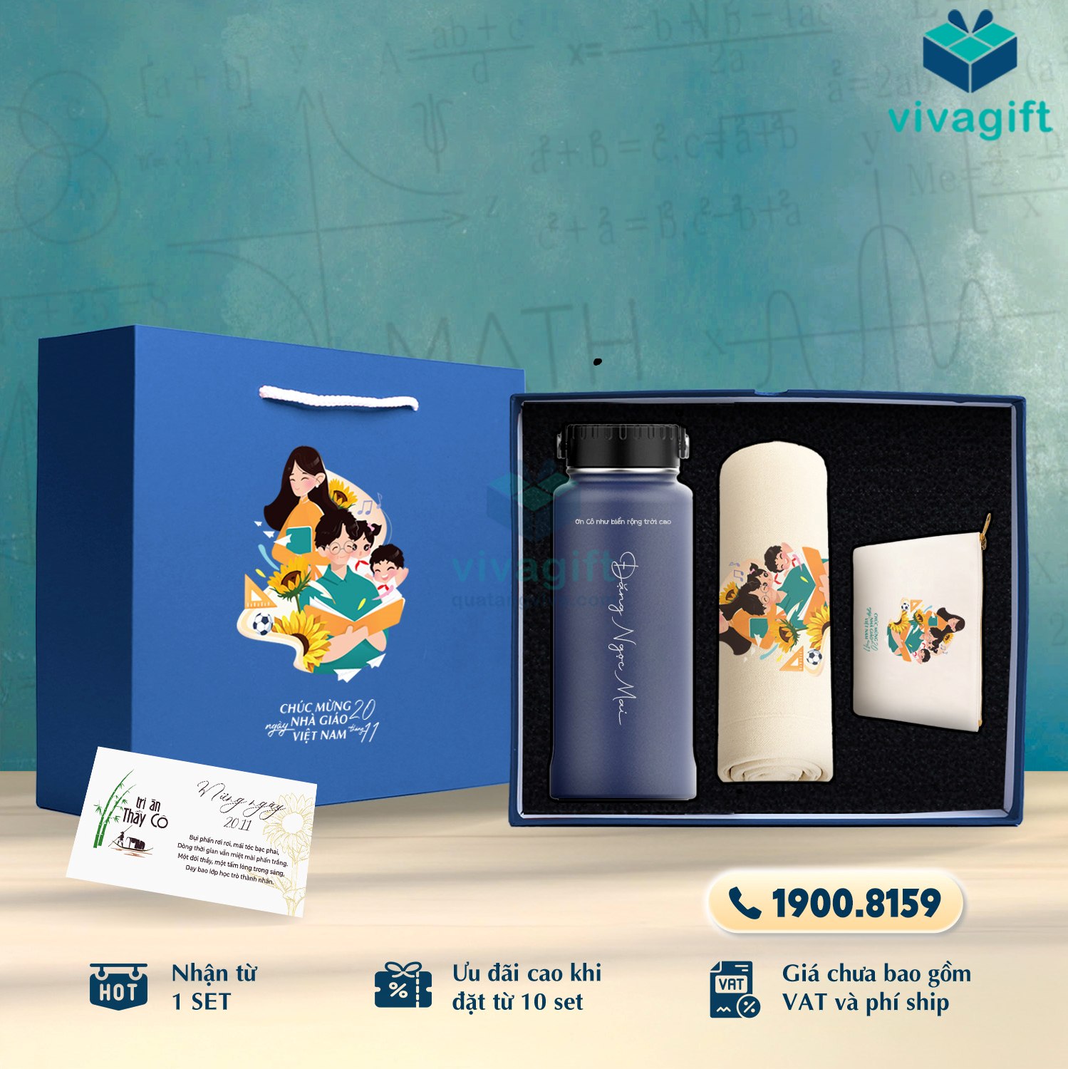 Set Quà Tặng 20/11 Bình Giữ Nhiệt, Túi Tote, Túi Nhỏ SQT211 – Quatangviva.com