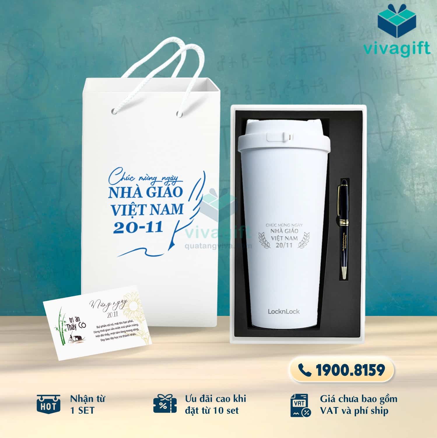 Set Quà Tặng 20/11 Ly Giữ Nhiệt, Bút Kim Loại SQT218 – Quatangviva.com