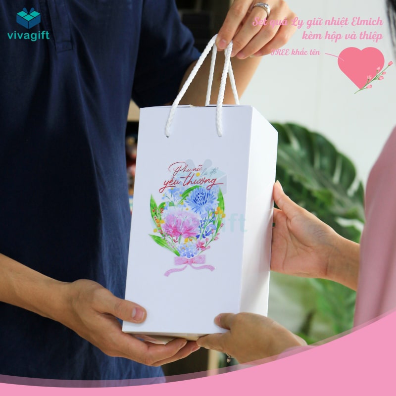 Set Quà Tặng 8/3 Ly Giữ Nhiệt Elmich EL8345WTH, Hộp Đựng, Thiệp SQT2023 – Quà Tặng Viva