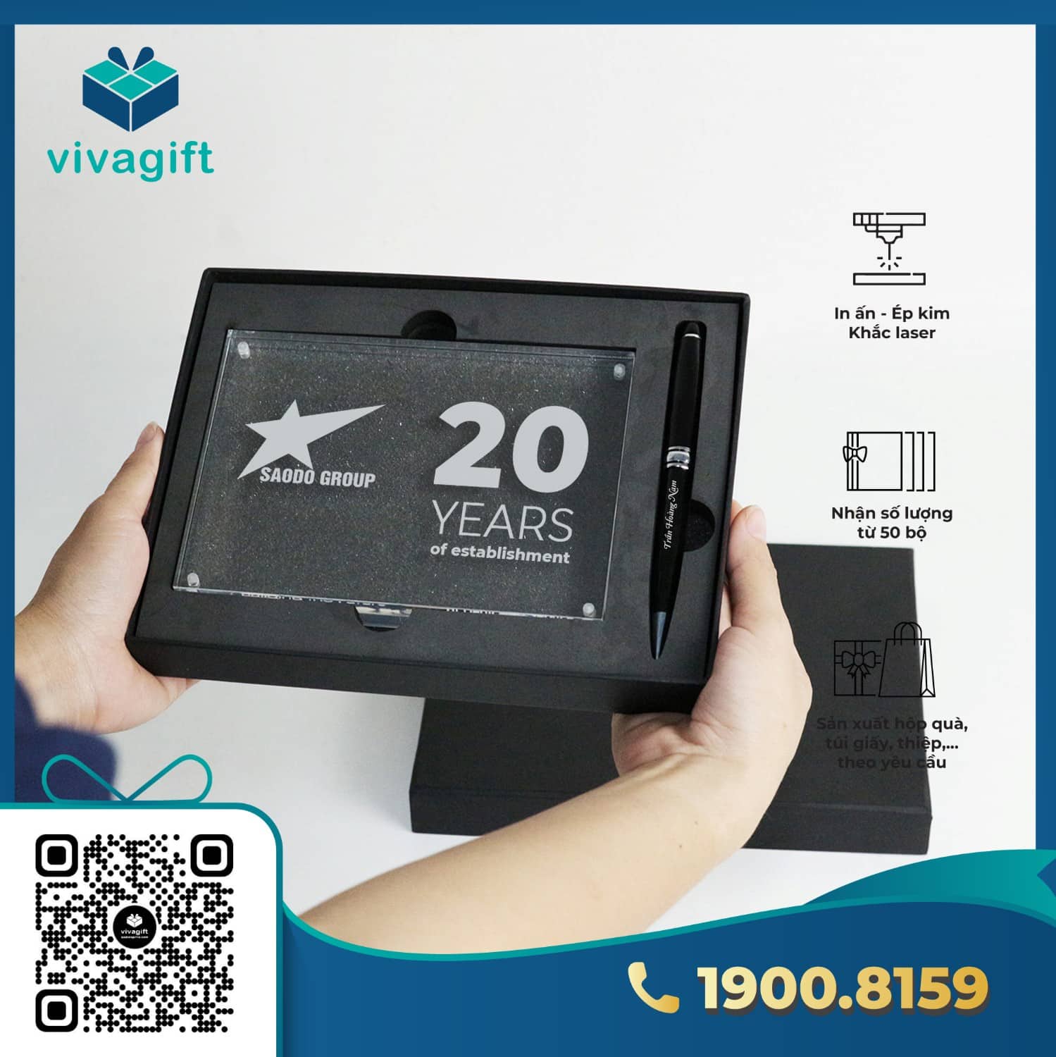Quà tặng Viva chuyên sản xuất set quà tặng doanh nghiệp trọn gói, số lượng và có thể tùy chỉnh theo yêu cầu khách về sản phẩm, chất liệu, kích thước, ngân sách, kỹ thuật in ấn. Xưởng Vivagift nhận sản xuất từ 50 set trở lên cùng dịch vụ in logo, khắc tên theo yêu cầu.