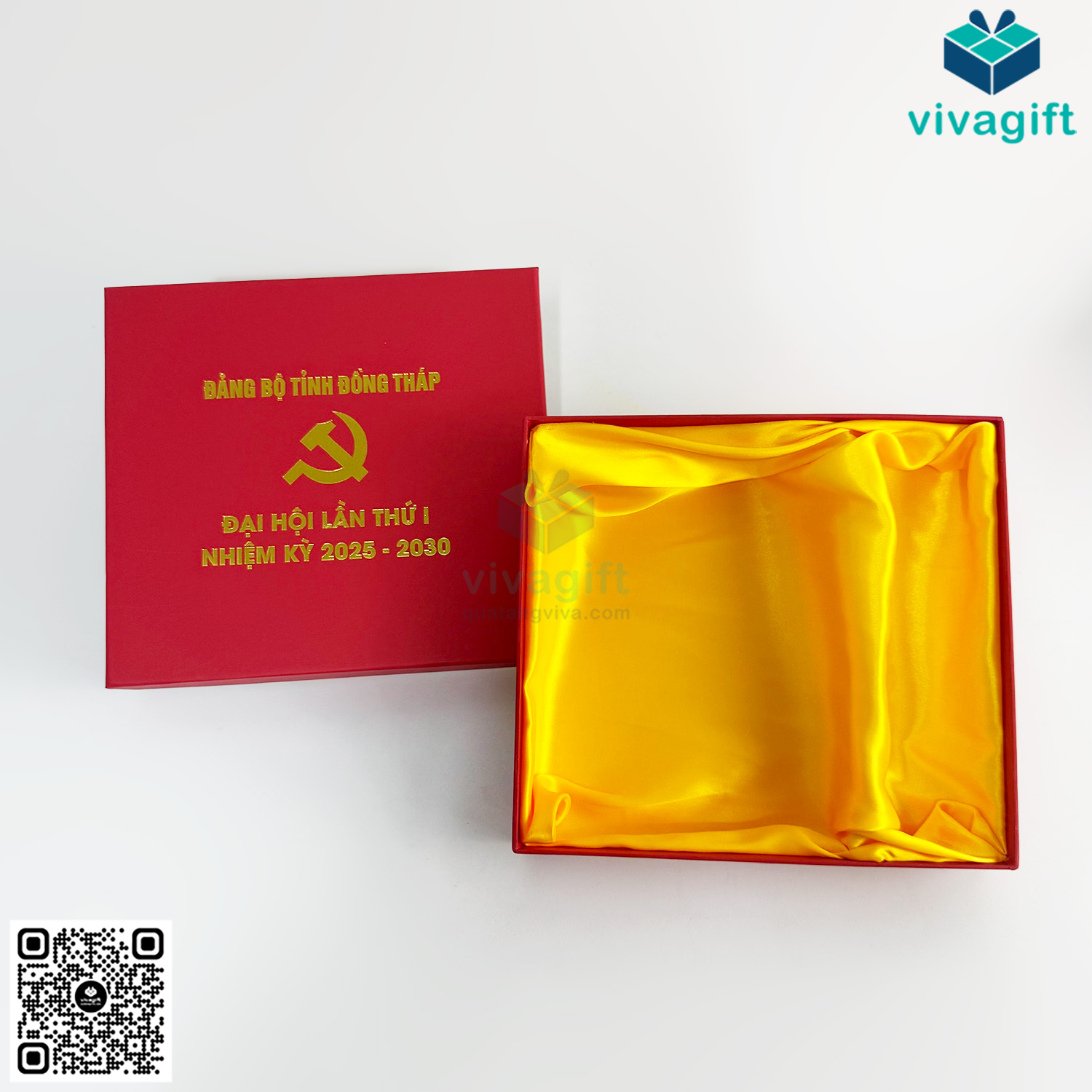 • Hộp quà thiết kế âm dương: Hộp màu đỏ, bên trong được lót lụa vàng. Bên ngoài được ép kim vàng nên tạo điểm nhấn cho sự kiện hay dịp tặng quà.