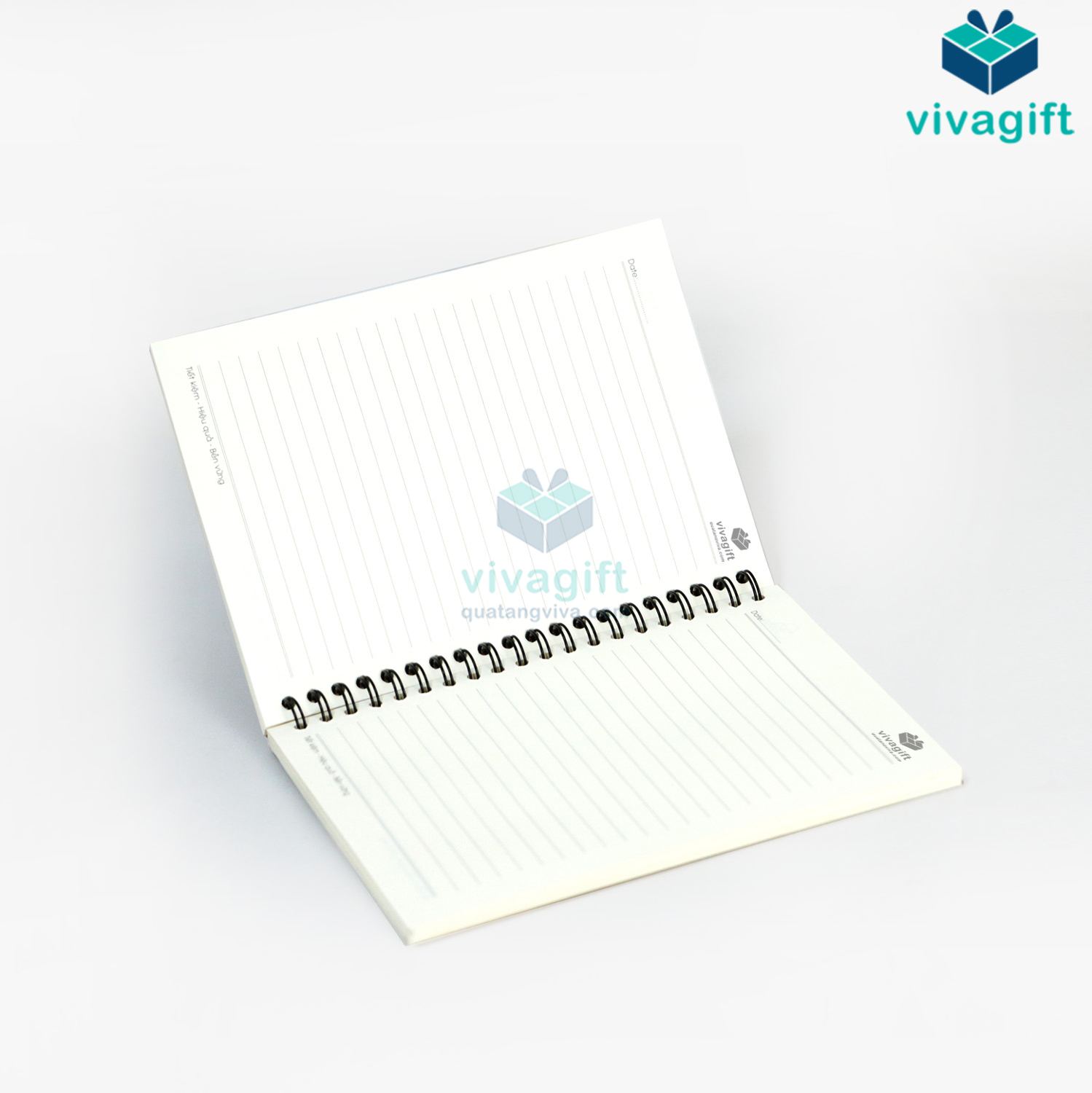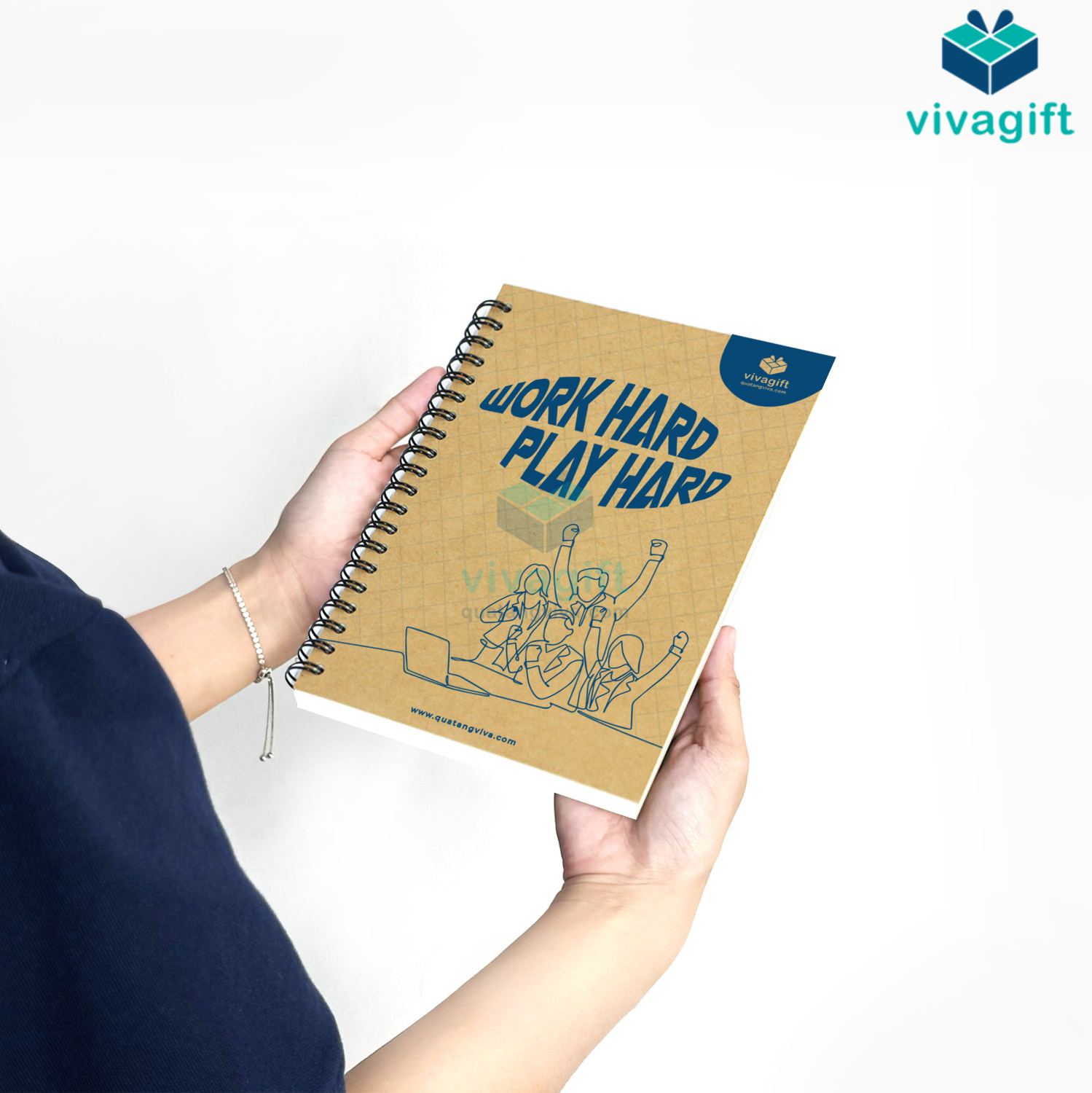 Vivagift là xưởng in sổ tay lò xo theo yêu cầu, đa dạng kích thước: A5, A6 và chất liệu bìa từ giấy kraft, giấy C300, C600, bìa da để khách hàng lựa chọn. Vivagift hỗ trợ báo giá nhanh, tư vấn thiết kế và in ấn trước khi tiến hành sản xuất.
