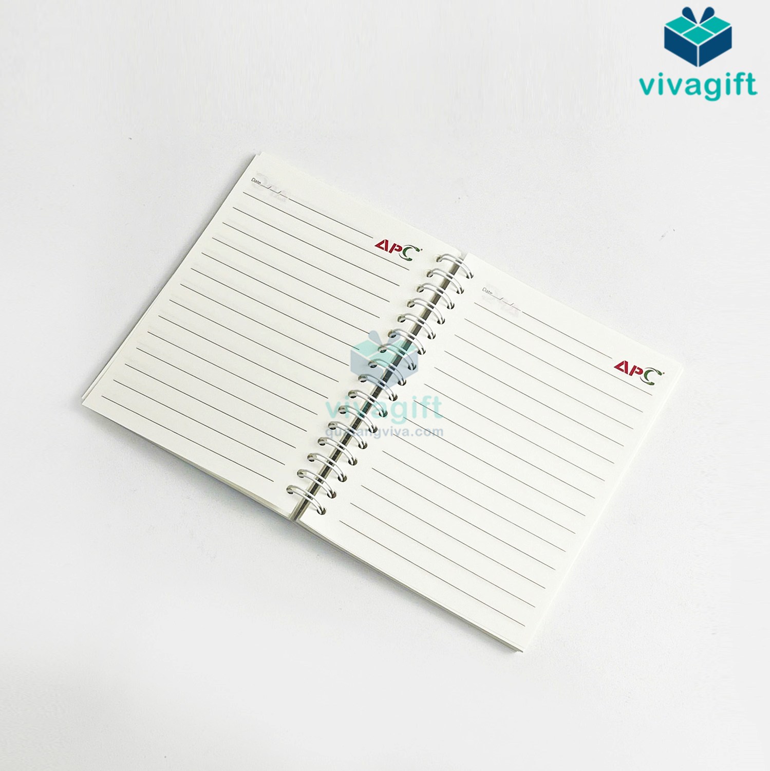 Quà tặng Viva tự hào là xưởng sản xuất sổ tay lò xo in logo theo yêu cầu trọn gói với hơn 50+ mẫu đa dạng kích thước (A5, A6,…) và chất liệu bìa như giấy kraft, giấy C300, C600, bìa da cao cấp. Xưởng nhận thiết kế mẫu theo yêu cầu, đáp ứng mọi nhu cầu cá nhân hóa của doanh nghiệp.