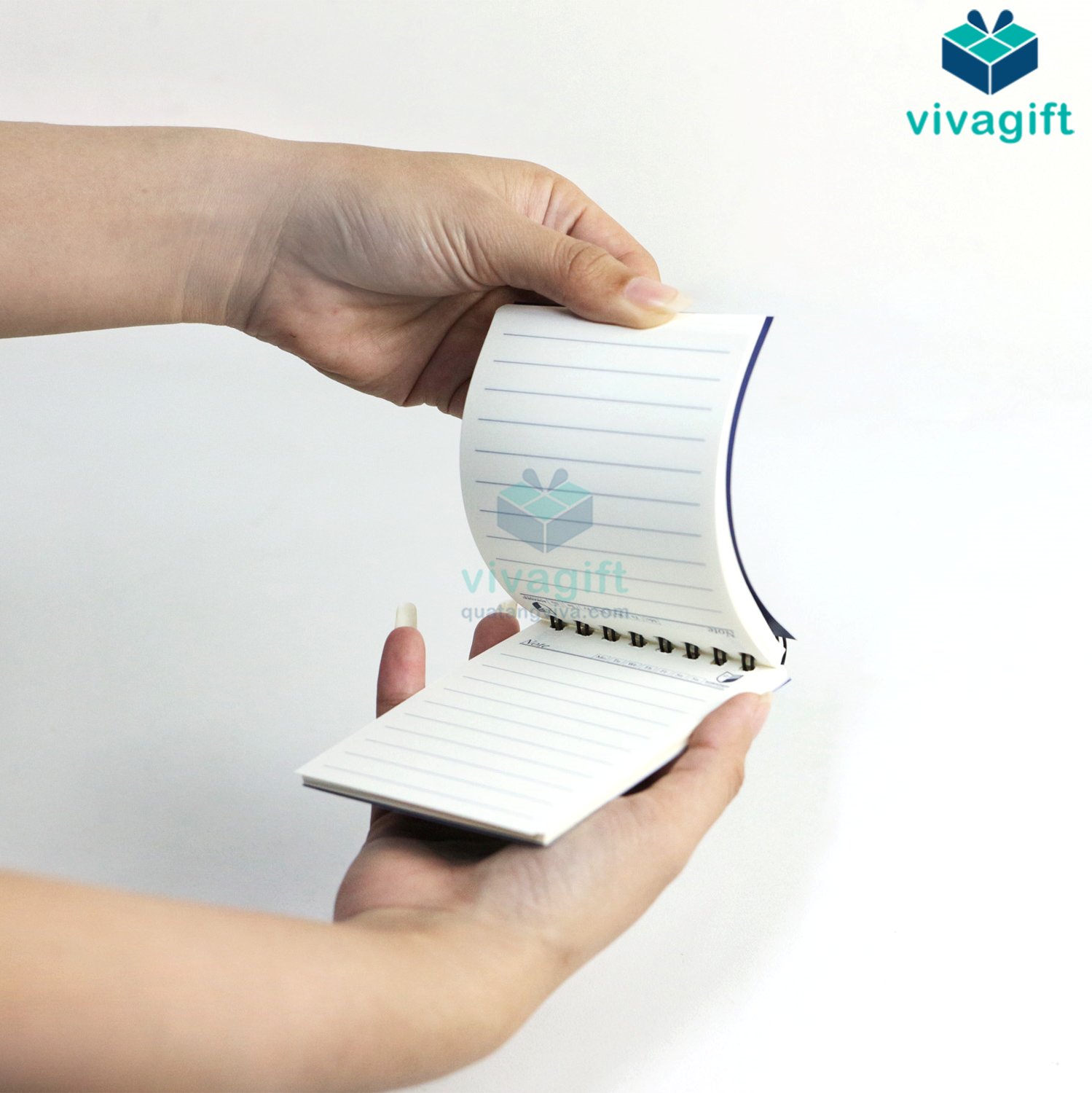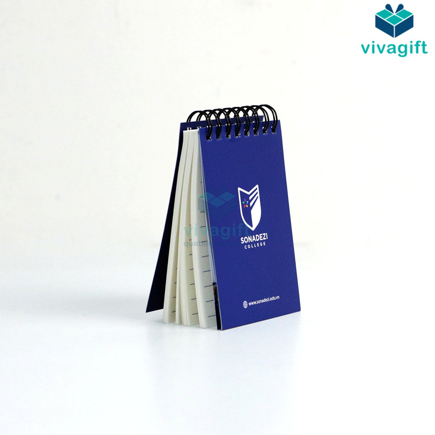 Quà tặng doanh nghiệp Viva là xưởng in sổ tay lò xo theo yêu cầu với số lượng từ 50 cuốn trở lên, phù hợp làm quà tặng doanh nghiệp, hội thảo. Sản phẩm đa dạng về kích thước như A5, A6 và chất liệu bìa như giấy kraft, giấy C300, C600, C900, bìa da cao cấp.